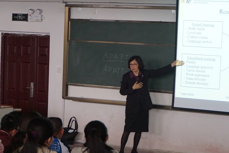 4月7日下午,瑞士西北应用科技与艺术大学教授张新华以”Developing global mindset through cultural intelligence(全球化理念和文化智商)”为题,为beat365亚洲体育官方网站师生做了一场精彩的双语学术报告。报告由党总支书记王新主持,beat365亚洲体育官方网站部分师生聆听报告。