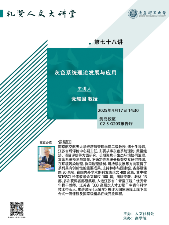 党耀国,男,现任南京航空航天大学经济与管理公司二级教授、博士生导师,江苏省后评价中心副主任。先后获得数学学士与管理科学与工程博士学位,具备坚实的数学与管理学学科背景。曾多次赴加拿大、美国、英国等国家开展学术交流与合作。现担任IEEE灰色系统专业委员会副主任、中国灰色系统理论学会副理事长、中国农业系统工程青年研究会副主任、中国优选法、统筹法与经济数学研究会理事,国家一流课程评委,以及江苏省数量经济与管理科学学会、江苏省系统工程学会、江苏省系统科学研究会理事等多个重要学术职务。兼任《The Journal of Grey System》《Grey Systems: Theory and Application(GS)》等SCI期刊编委,并受邀为《IEEE Transactions on Systems, Man and Cybernetics: Systems》《Expert Systems with Applications》《Energy》《中国管理科学》《系统工程理论与实践》《控制与决策》等十余种国内外核心期刊担任特约审稿人。主要从事灰色系统理论、数量经济、项目评价等方面研究,长期聚焦于生态环境协同治理、复杂系统预测与决策、不确定性系统分析等交叉研究领域,在环境污染治理、协同治理机制、可持续发展等方向取得了系列具有创新性的重要成果。主持和参与国家级、省部级课题30余项,在国内外学术期刊发表论文400余篇,其中被SCI/SSCI检索收录论文超过100篇。已出版《Optimization of Regional Industrial Structures and Applications》《灰色评价与预测建模技术研究》《灰色预测与决策模型研究》《区域产业结构优化理论与实践》《预测方法与技术》《运筹学》《应用多元统计分析》《投资项目评价》等专著与教材13部。获得江苏省哲学社会科学优秀成果一等奖1项,江苏省科学技术一等奖1项,中国高校自然科学奖二等奖2项,江苏省科技进步二等奖2项,江苏省软科学成果二等奖1项;获国家教学成果二等奖1项,江苏省教学成果一等奖2项。曾入选江苏省“青蓝工程”优秀青年骨干教师、江苏省“333高层次人才工程”中青年科学技术带头人。主讲课程《运筹学》被评为国家级线上线下混合式一流课程及国家级精品在线开放课程。