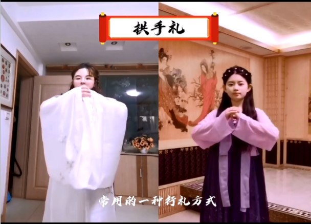 作揖礼倡导返校见面新礼仪:作揖礼作为中华传统礼节,在中国已经有2000多年的历史。财管195班王蕴颖、郝子涵同学身着古装,为大家演示并讲解了不同场合下的行礼方式,倡导大家返校后见面行作揖礼。在当下特殊时期,作揖礼不仅是一种防控措施,还有传承文化的作用,能让员工更好地了解中国文化,感受中华民族礼仪之邦的传统。