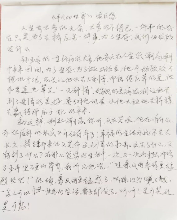 国商192班张晓宇为同学们推荐了《平凡的世界》一书,她在推荐理由中这样说道:“《平凡的世界》是路遥先生的代表作之一,该书详细的描写了文革后期到改革开放之后的陕北农村生活的方方面面,小说语言风格十分朴素,作品代入感极强,使读者深深的沉浸在小说所描写的世界之中。最吸引我的是这部小说在人物刻画方面,作者通过人物的动作与心理描写,将人物形象充实饱满的展示在读者眼前,书中的主人公就像是切实生活在你身边一样。我们可以真切地感受到人性的色彩,在我来看《平凡的世界》所描写的就是一群不平凡的人,因为在这平凡的世界里,没有一天是平静的。”
