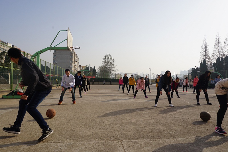 上午九点,活动准时开始。首先,主持人带来的诗朗诵《我的滑板鞋》,调动了同学们的热情。随后活动正式开始,主持人介绍本次比赛的规则,本次游园会活动的参赛队伍共分为21组,每组六个人,由四个小游戏组成,最后累计得分最高的小组获胜。四个小游戏分别为“踢毽子射靶”、“篮球接力”、“六人七足”、“气球啪啪啪”。在接下来的游戏中,首先由工作人员示范,随后各组同学积极参与,开动大脑,与队友配合默契。其中穿插的相声和歌曲更是引得参赛选手拍手叫好。在工作人员统计成绩间隙,一个抱团游戏,增强了同学之间的默契和应变能力。最后,主持人宣布比赛结果,获得一等奖的是16组,获得二等奖的是19组和12组。