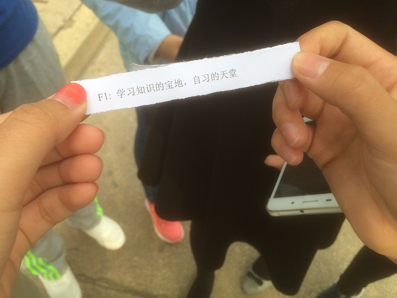 伴随着一段激动人心的音乐,同学们以宿舍为单位聚成一个个小队,面对有趣的比赛项目表现出很高的期待,整装待发,跃跃欲试。首先,主持人就比赛环节进行了简要介绍。整场活动共分为三个环节,第一个环节叫做迷雾森林,同学们需要在女生一公寓到二教的路途之间找到已被藏匿起来的五种颜色的卡片。当主持人一声令下,同学们便积极投入了比赛,以飞快的速度奔跑,相互配合并细致搜索,在追逐中陆续决出了前二十组胜出。第二个环节的名字是火眼金睛,由第一环节胜出的前二十组以抽签的方式决定从不同的起点开始,通过对沿路的建筑或公共设施等景物的观察找到对应的工作人员,回答其随机抽取的谜语,直到答案正确为止。这一环节不仅比拼了体力,更是考验了参赛者的观察力和思考能力,各组队员团结一心,都很快完成了任务。比赛中的穿插环节为精彩的抽奖活动,在此环节中,现场参与者众多,气氛热烈。欢呼声与掌不绝于耳。在激烈的角逐中产生了一等奖一组,由曹星炫等获得;二等奖两组,由曲迎超等获得;三等奖三组,由巴述杰等获得。比赛在同学们欢快的掌声中落下了帷幕。