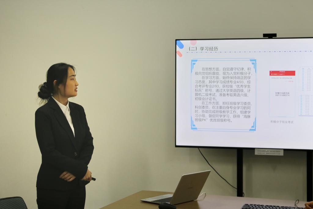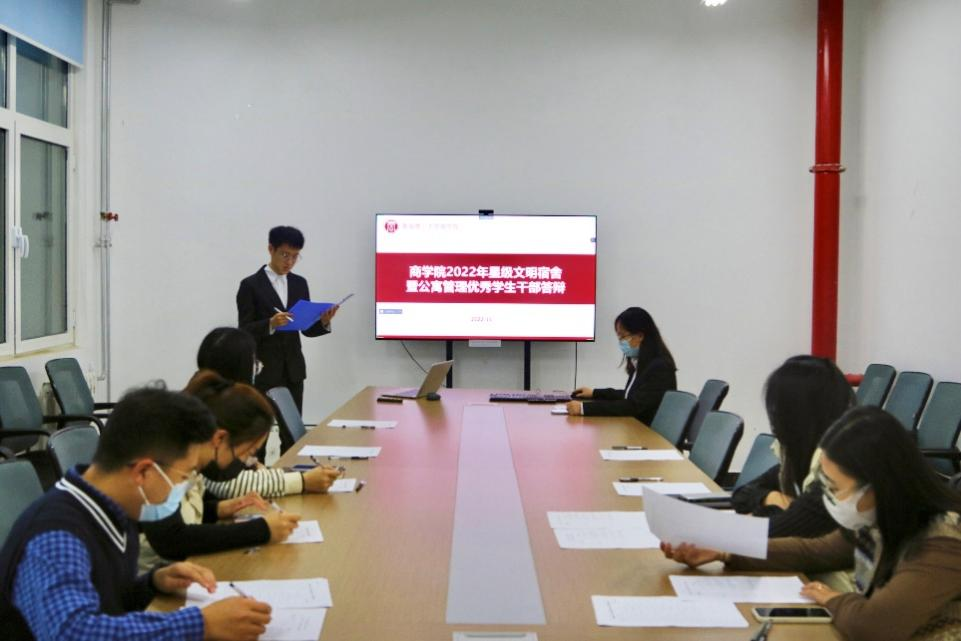 “大家筑小舍,小舍住大家。”经过前期报名申请、公司初审,最终共有11个宿舍和10位员工干部进入本次答辩环节。各宿舍代表依次从宿舍概况、学风建设、思想建设、综合素质、未来发展等多个方面展开现场陈述介绍,展示出了友爱互助的宿舍氛围、并肩进步的和谐关系和整洁舒心的宿舍环境。各员工干部也就工作内容、工作总结以及未来工作展望等多方面对公寓建设工作展开陈述。宿舍同学工整的课堂笔记、各类获奖证书、各类实践活动,引起现场评委阵阵赞叹和掌声。团结互助、和谐友爱、奋发共进的宿舍风貌和员工干部风采展现了商院学子“勇毅明理 笃学弘商”的精神面貌。