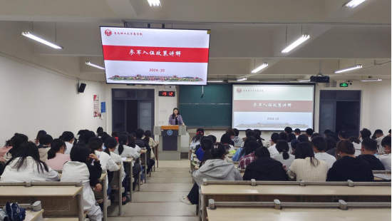 宣讲活动在主教学楼B436的课堂上拉开帷幕。军事理论课教师于淼在讲解完专业知识后,巧妙引入征兵入伍的话题,为宣讲活动做好铺垫。随后,退伍士兵财管231班龙高走上讲台,以生动的语言和丰富的案例,开启了征兵政策宣传的精彩篇章。