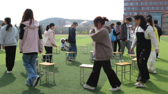 作为唯一个人项目,“150秒踢毽子”成为展现员工个人毅力的舞台。参赛选手需在限定时间内保持毽子不落地,最高纪录由统计学专业蒋佳雪以连续踢毽170次摘得桂冠。她表示:“踢毽子不仅是技巧的比拼,更是心态的较量,每一次失误后的坚持都让我更加自信。”集体项目中,“限时150秒8字跳大绳”尤为考验团队配合。各队需以“8”字形路线依次穿越高速摆动的长绳,市场营销专业团队以零失误的默契表现斩获第一。而“企鹅赛跑”则充满欢声笑语,参赛者需双腿夹球、双臂平举模仿企鹅步态冲刺,滑稽的动作与紧张的竞速形成反差,引得观众捧腹。“抢凳子大战”则以灵活性与反应力为核心,选手们随着音乐节奏绕圈疾走,哨声一响瞬间争抢座位,紧张刺激的场面扣人心弦。