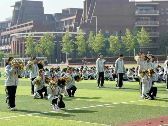 随后,2024级全体班级依次进行心理健康操展示,各班动作强劲有力、队伍整齐划一,创新式的将啦啦操刚柔并济的方式、古典舞行云流水的身段、书法挥毫式的艺术神韵等文化元素巧妙融入操舞动作,配合古典民乐或现代舞的韵律,让每一套心理健康操都成为流动的文化盛宴。在强身健体、调节情绪的同时,员工们以肢体语言诠释传统文化内涵,实现心理健康教育与美育、体育的有机融合。营销241班团支书吴汀玮表示:“通过此次心理健康操比赛,班级同学共同出谋划策、创编动作,展现了班级昂扬向上的精神风貌,班级凝聚力得到了提升。”