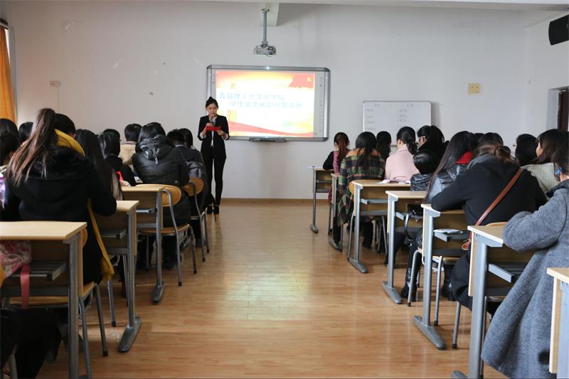 12月11日下午,beat365亚洲体育官方网站员工党支部在1教227教室举办以“重温党史,勇担责任”为主题的党史知识竞赛,beat365亚洲体育官方网站员工一、二支部全体党员和部分入党积极分子参加竞赛。