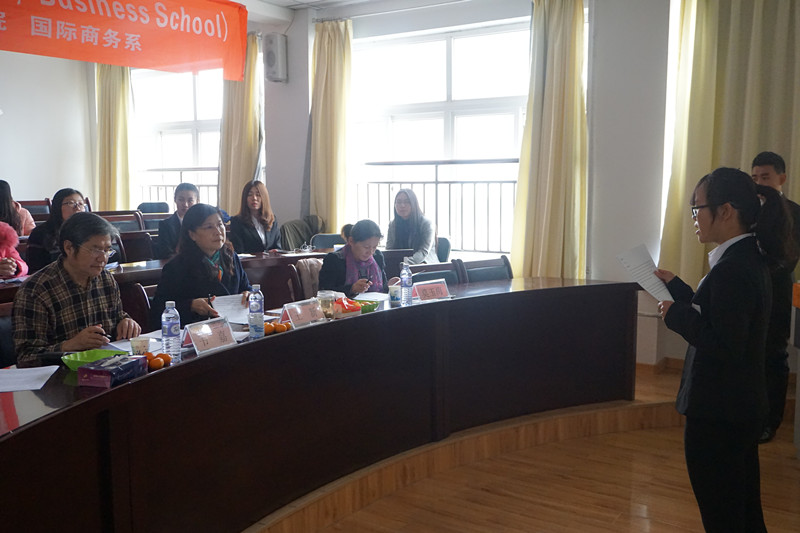 上午的团体赛分为才艺展示与情景剧展示两个环节,选手们用自己流利的英语说学逗唱,尽情展示着自己的才艺。幽默风趣的情景剧时而令人深思,时而逗得评委老师和同学们哈哈大笑。下午的个人赛分为短文诵读和财经热点话题讨论两个环节,选手们先以准确的发音,得当的语调博得了评委老师们的认可,又以流畅的表达与评委老师们讨论财经热点话题,获得了老师们的好评。