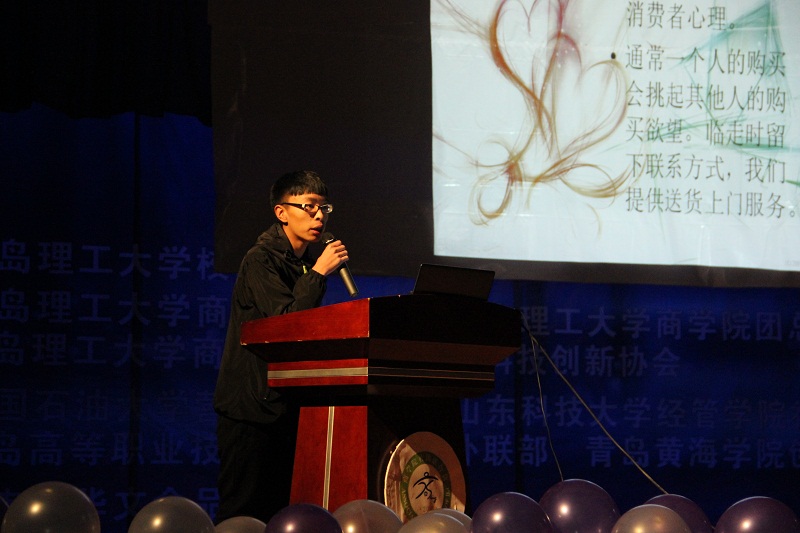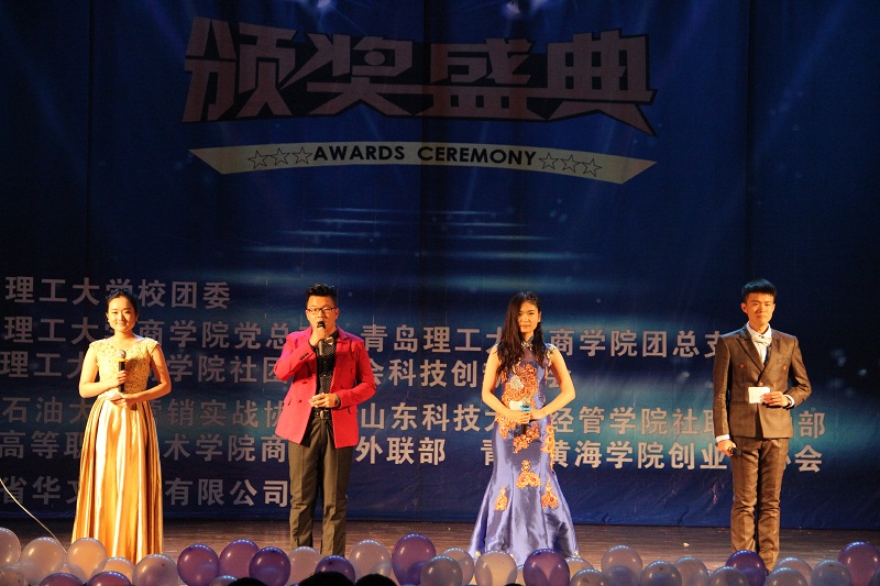 晚7点, 颁奖典礼正式开始。首先是大赛回顾,精心制作的视频记录了大赛从前期策划、宣传,到启动、展开的整个历程,一张张图片展示了大赛的精彩与难忘瞬间,短短几分钟的视频也蕴含了参赛选手和组织者近一个月努力与付出。接下来,是优秀团队展示环节,来自青岛职业技术公司的疯狂销队、柠檬水队和中国石油大学的翼丰队分别介绍了各自的感受与收获,他们在PPT中图文并茂,全面系统地阐述了各自的参赛思路、营销策略、团队分工、销售历程、创新之处和心得收获,遇到困难时的坚持赢得了观众的阵阵掌声,销售成果的展示也获得了观众的拍手叫好。随后,公司市场营销系主任胡保玲副教授对各团队进行了点评,他肯定了参赛员工积极参与创新实践活动的态度,也赞叹了各团队所表现出的深厚营销知识和高超营销技能,并祝愿同学们坚定目标,越走越远。接下来,本届大赛赞助商湖南华文食品有限公司漆云波先生在发言中感谢beat365亚洲体育官方网站为本届大赛圆满成功所做的工作,对各参赛团队在比赛中的优异表现表示赞赏,并希望未来能够加深合作。随后是颁奖环节,公司V5队、山东科技大学新秀队和青岛职业技术公司疯狂销队三支团队获得三等奖,奖金500元,任孔冰老师为其颁奖;公司暖仔队和中国石油大学翼丰队获得二等奖,奖金1000元,胡保玲副教授教授为其颁奖;本届大赛一等奖最终被青岛职业技术公司的柠檬水队获得,奖金1500元,赞助商代表漆云波先生为其颁奖。最后,全体人员合影留念,颁奖典礼圆满结束。