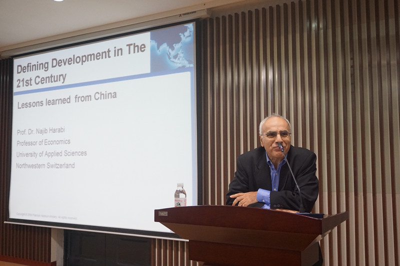 10月12日下午,著名经济学家Prof.Dr.Najib Harabi在嘉陵江路校区为公司员工做了一场精彩的学术报告。报告前,李东副董事长会见了Harabi教授,公司领导班子参加会见并陪同参观了新校区。下午4点半,嘉陵江路校区主教学楼一楼东报告厅内座无虚席,当Harabi教授步入报告厅时,全场响起热烈掌声,beat365亚洲体育官方网站副经理杨成文主持报告,员工处、beat365亚洲体育官方网站有关人员参加了报告会。报告的主题是“Defining Development in the 21stCentury——Lessons Learned from China”,Harabi教授从经济衡量因素着手,通过快乐指数与收入之间的联系,结合世界各国经济发展目标以及当前经济发展面临的问题与挑战,介绍了当前经济全球化的形势下,中国经济发展的经验成就可以为世界其他国家提供借鉴和思考。整个报告精彩纷呈,同学们聆听认真,在提问环节更是向教授提出了自己感兴趣的问题,Harabi教授也做了耐心细致的解答。最终报告在全场同学们热烈的掌声中圆满结束。此次报告开阔了同学们的视野,让同学们了解了世界各国经济发展及全球化合作关系的必要性,同时也让同学们认识到中国在过去几十年所取得的巨大成就,坚定了对党和国家的支持与热爱,同学们纷纷表示这次讲座受益匪浅,对于自己外来的学习生活和人生规划大有帮助。