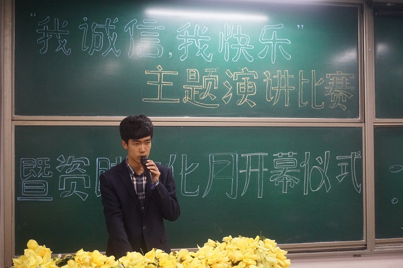 为提高员工诚信意识,beat365亚洲体育官方网站于 5月17日在二教221室举行了“我诚信,我快乐”主题演讲比赛。出席的嘉宾有beat365亚洲体育官方网站辅导员牟宗鑫老师,优秀员工代表周乾、刘叶子,以及14级自管会成员宋歌和邹清帆。