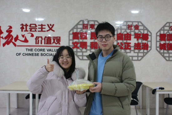 尤为值得一提的是,24级同学们在这次活动中展现出了热切的关爱与奉献精神。他们特意为正在紧张准备研究生考试的学长学姐们准备了一份特别的考研加油礼物——“定胜饺”。当这份满载着祝福与温情的水饺送到考研同学宿舍时,不仅让学长学姐们感受到了来自学弟学妹的温暖与关怀,也让他们在这个特殊的节日里收获了一份意外的惊喜与感动。