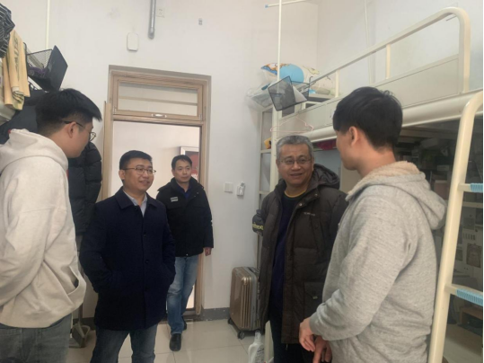 在宿舍走访过程中,公司领导、老师与同学们亲切交谈。肖学斌详细了解员工期末考试、考研就业情况和寒假学习计划,对员工提出的疑惑和困难作了细致解答,并对同学们送上了新年祝福。云乐鑫勉励同学们在努力学习、拼搏向上的同时,要注重劳逸结合,注重体育健身,保持良好的身体状态和精神状态迎接2025年。