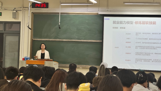 中国青年创业就业基金会理事、金融业资深人力资源顾问张敏围绕《面向未来的金融行业就业指导》主题,依托其深厚的人力资源管理经验,全面剖析了金融行业就业形势,分享了高效求职策略与科学职业规划方法,助力学子们提升就业竞争力。