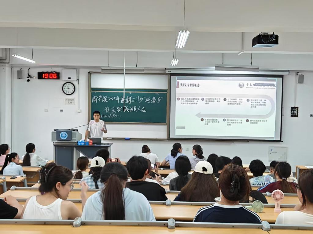 最后,公司社会实践重点团队负责人及新媒体负责同学李嘉华、刘晓静、杨佳乐、李昀航分别从社会实践过程设计和成果转化、新媒体作品制作、新闻稿撰写、新闻摄影等方面进行经验分享,为同学们开展社会实践提供具体做法与指导。员工代表统计241纪鑫雨带领全体与会师生进行庄严承诺:在2025年暑期“三下乡”和“返家乡”社会实践中,严格遵规守纪,时刻加强安全防范和自我保护意识,绷紧安全之弦,听从指导教师安排,保证团队集体行动,加强组织纪律观念,在实践锻炼中展现新时代青年的责任担当。