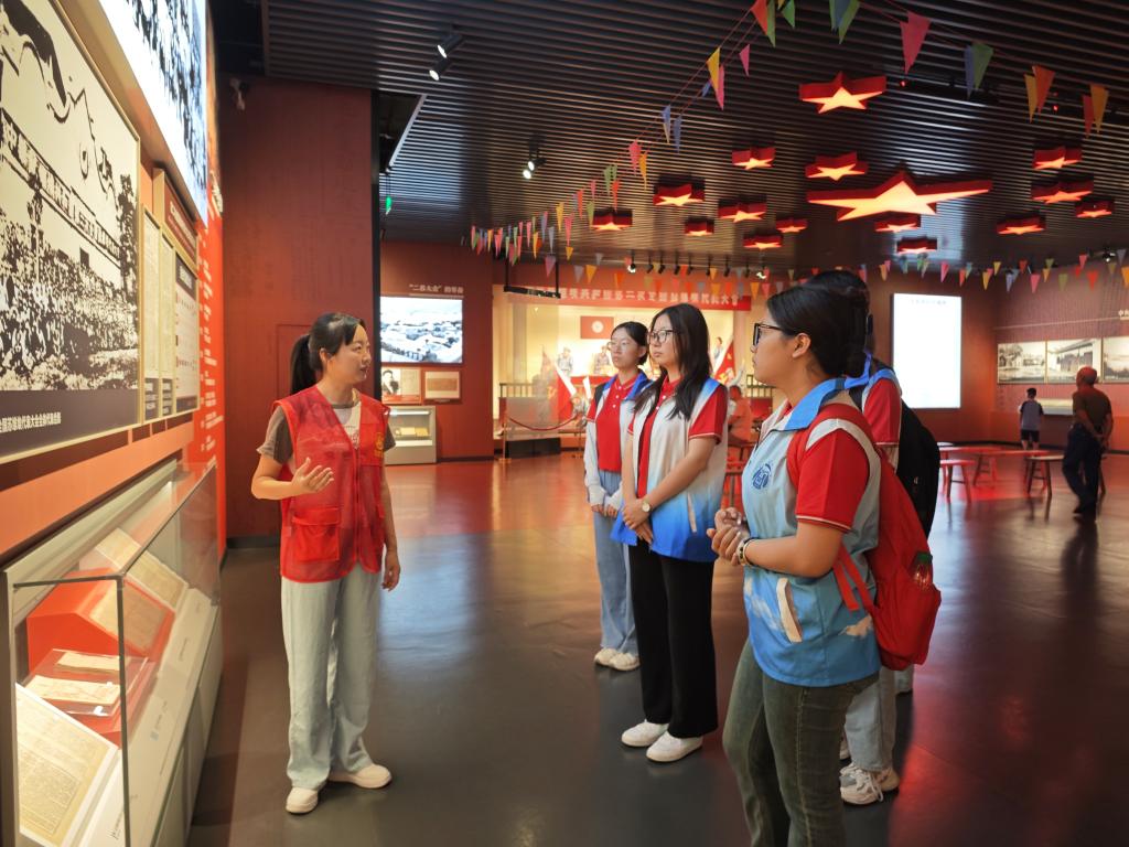 感悟苏区精神,数字赋能红色传承。在瑞金中央革命根据地纪念馆,通过专业讲解和数字化沉浸式体验,团队成员全方位、多角度地了解中华苏维埃共和国的发展历程。透过斑驳的石印机、珍贵的二等铜制红星奖章等文物展陈,队员们深刻感悟“坚定信念、求真务实、一心为民、清正廉洁、艰苦奋斗、争创一流、无私奉献”的苏区精神的深刻内涵。纪念馆宣传部主任刘俊林向团队详细介绍了苏区精神的传承实践。团队探讨了如何通过数字化手段提升红色教育的沉浸感和参与度,结合商科背景提出可行性建议,为红色基因的传承注入数智动能。