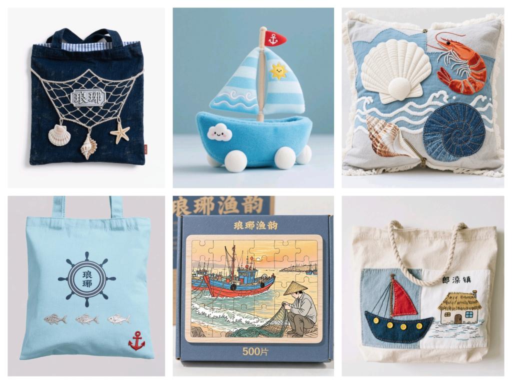 搭建“云桥”,创新文创,赋能乡村振兴新希望。综合实地考察成果,团队巧妙融合渔业文化与创意设计,为琅琊镇搭建起电商“云桥”。不仅帮助渔民升级海产品包装,还以琅琊镇的海产品为原型,创新推出了“琅琊渔韵文创”产品系列,为古老渔村注入新活力。