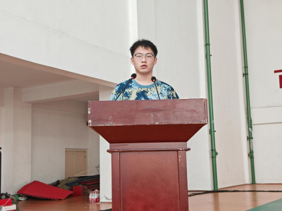 2025级新生代表、财管252班刘书鸣代表全体新生发言,号召同学们以饱满的热情、昂扬的斗志和严明的纪律,全力以赴投入军训,向中国人民抗日战争暨世界反法西斯战争胜利八十周年献礼!