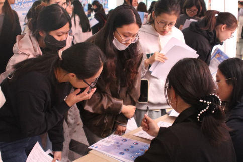 现场气氛热烈,人潮涌动。公司715名2026届毕业生踊跃投递简历,积极与用人单位代表沟通交流,主动了解岗位需求与发展前景,充分展现了商院学子积极的就业态度和饱满的精神风貌。