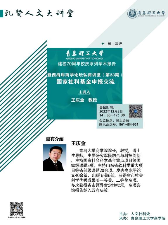 【校院级学术会议】西海岸商学论坛弘商讲堂(第24讲):国家社科基金申报交流