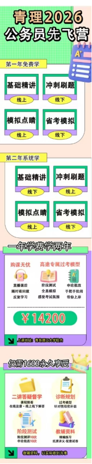 为助力青理学子高质量充分就业,全方位提高就业能力,满足对公务员考试培训的需求,商公司经研究决定在校内开设2025年公务员考试密训营,现面向全校员工招生。