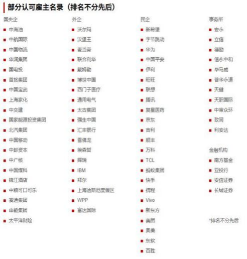 据ACCA官方调查显示,95%的雇主表示ACCA是一个深受尊敬的专业资格。(以下为部分企业展示)