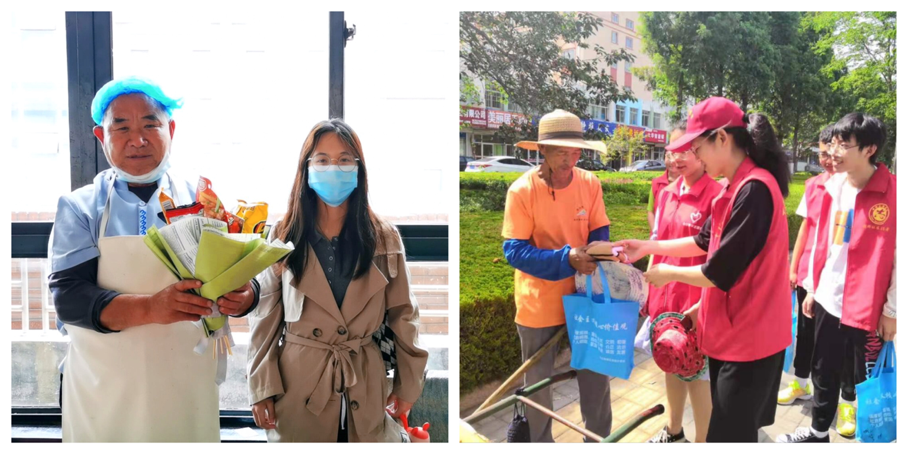 劳动之手点燃生命之光,平凡之路构筑伟大梦想。在我们身边总有这样一群人,他们爱岗敬业、艰苦奋斗、心怀大爱,在平凡的岗位上创造不平凡的价值。本次活动商院学子纷纷向宿舍阿姨、食堂师傅、公司老师、防疫人员送上精心制作的小礼品,致敬每一位辛勤耕耘的劳动者,借此机会向劳动者表达诚挚的敬意与感谢。经济212逄斯露在卡片上写下对宿舍阿姨的感谢:“每次走进宿舍楼,总会迎上宿管阿姨亲切的笑脸,她会关心我们的日常生活,提醒我们注意饮食。”经济212石佳立对食堂师傅的辛勤工作致以敬意:“食堂饭菜色香味俱全,材料新鲜安全,是您为我们营造舒适洁净的就餐环境。”统计211阙艺琢通过参加社会实践活动对环卫工人的工作有了深层次的理解:“大街小巷你用脚步丈量,起早贪黑汗水浸湿衣裳。春夏秋冬一如既往,你为文明城市贡献着力量。”每一位劳动者都是校园的守护人,与幸福的每一次精彩邂逅,都离不开他们幕后的辛勤付出。