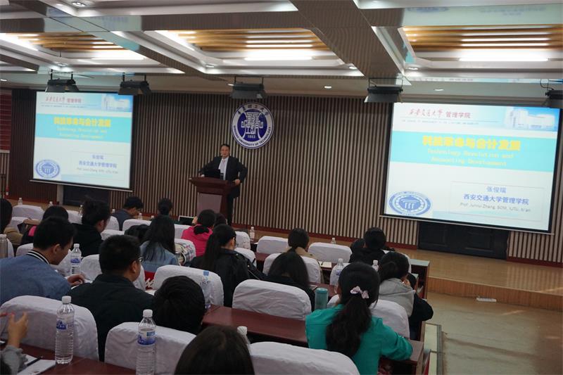 10月28日,由全国会计专业学位硕士研究生教育指导委员会主办、公司承办的“MPAcc会计名家公益大讲堂”和MPAcc团队建设座谈会在黄岛校区举行。财政部会计名家培养工程入选者西安交通大学管理公司张俊瑞教授和南开大学国际beat365亚洲体育官方网站刘志远教授受邀作报告。公司党委副书记张殿恒、副董事长李国华出席报告会,人事处、beat365亚洲体育官方网站负责人及会计系、财务管理系教师参加交流。
