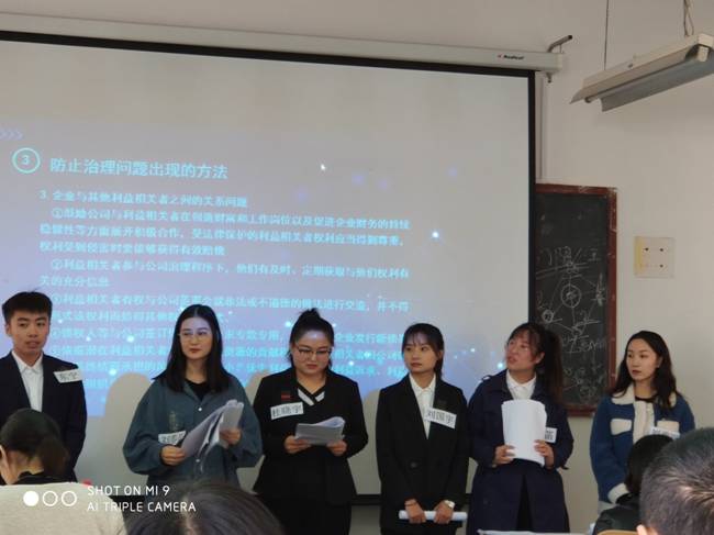 2019年11月11日上午在1教418公司组织会计专硕进行了初赛现场陈述与答辩。初赛的答辩老师由丁淑芹、毛淑珍、杨爱义、杨娜四位老师组成,答辩环节包括小组PPT陈述和现场答辩两部分。为了让每一位研究生都有现场的展示并充分体现小组团队合作与协调的能力,各小组陈述时小组成员均参与陈述,同学们在陈述时秩序井然,成员之间的陈述衔接顺畅,基本都能在规定的时间内完成陈述。