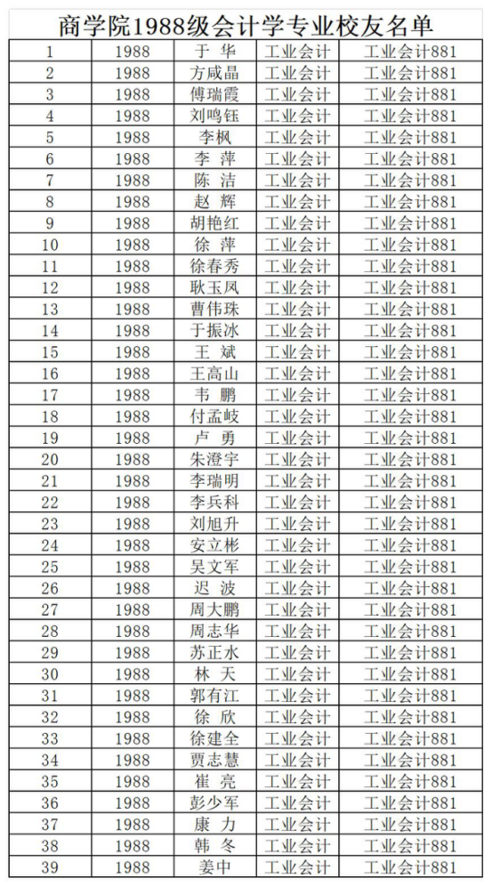 beat365亚洲体育官方网站1988级会计学专业员工名单