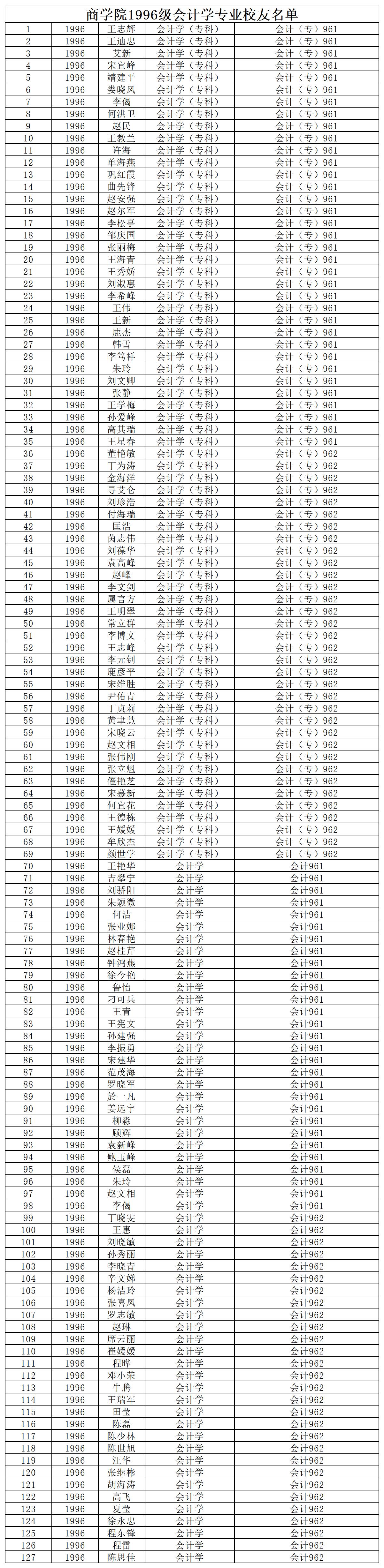 beat365亚洲体育官方网站1996级会计学专业员工名单