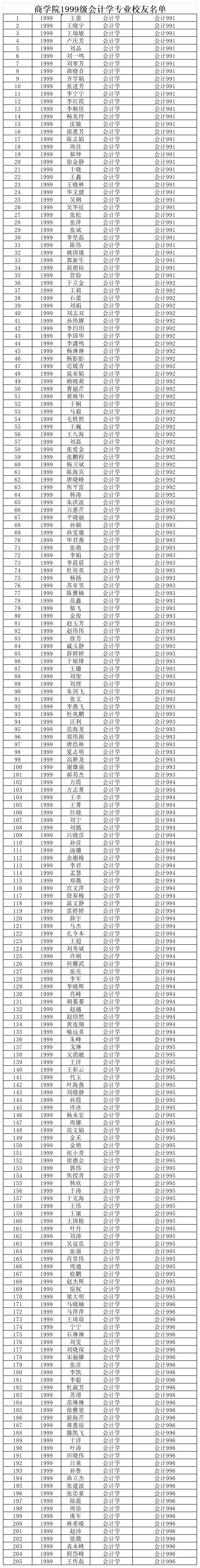 beat365亚洲体育官方网站1999级会计学专业员工名单